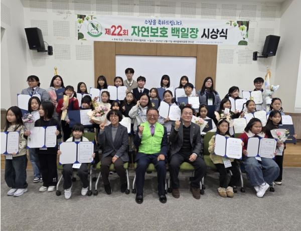 [한국제일신문, 김성옥기자] 구미시는 12월 17일 새마을운동테마공원 연수관에서 자연보호구미시협의회(회장 오석우) 주관으로 제22회 자연보호 백일장 시상식을 개최했다.