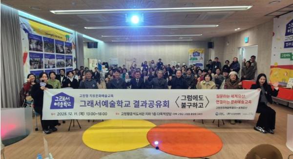 [한국제일신문, 이미란기자] 고창문화도시센터가 고창황윤석도서관 다목적강당에서 세계유산 기반 치유문화예술교육 사업의 성과를 공유하는 ‘2025 그래서예술학교 결과공유회’를 열었다.