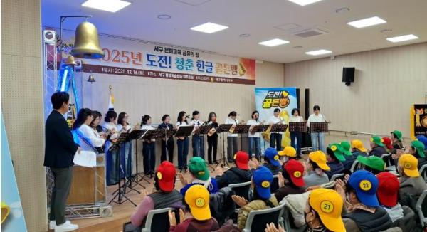 [한국제일신문, 김성옥기자] 대구 서구는 지난 12월 16일, 서구 복합청사 대회의실에서 지역 문해교육 학습자들이 한 자리에 모여 배움의 성취와 기쁨을 나누는 [2025년 서구 도전 청춘 한글 골든벨]을 개최했다.