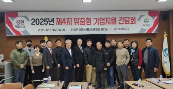[한국제일신문, 김성옥기자] 인제군은 지난 17일 원통농공단지 관리동 회의실에서 ‘2025년 맞춤형 기업지원 간담회’를 개최했다.