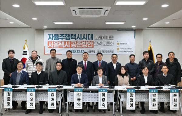 [한국제일신문, 김성옥기자] 서울특별시의회 정준호 의원(더불어민주당, 은평4)이 12월 17일 개최된 '자율주행 택시 시대 도래에 따른 서울택시 공존방안 모색 토론회'에 토론자로 참석해 자율주행 기술 확산이 피할 수 없는 흐름인 만큼 기존 택시 산업과의 공존을 전제로 한 행정·제도적 뒷받침 마련이 시급함을 강조했다.