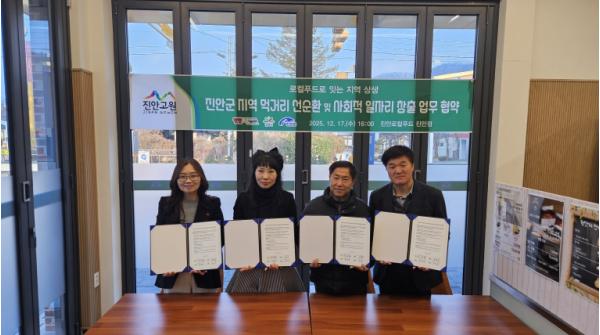 [한국제일신문, 김성관기자] 진안군은 지난 17일 진안로컬푸드 직매장 진안점에서 진안로컬푸드 영농조합법인, 굿데이(진안군 장애인보호작업장)와 함께 '진안군 지역 먹거리 선순환 및 사회적 일자리 창출 업무 협약'을 체결했다.