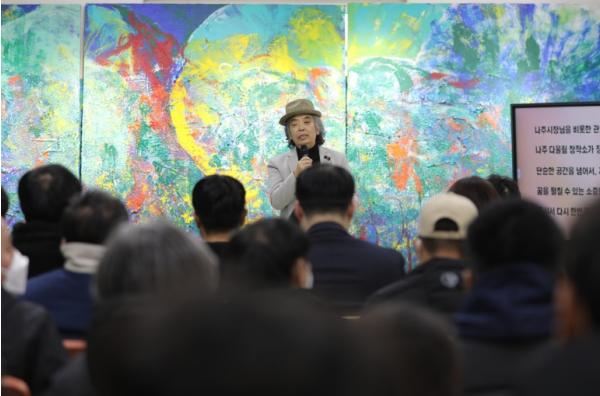 지난 17일 진행된 전시 개막 행사에서는 김근태 작가의 초청으로 밀라노 전시에 함께 참여하는 작가 10명 중 정순희 작가 등 나주와 전남 지역 작가 4명을 소개하는 시간을 가지며 성황리에 행사를 마쳤다.