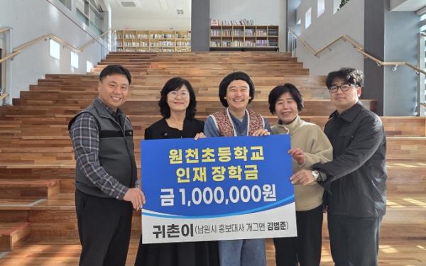 [한국제일신문, 이미란기자] 남원시는 12월 18일, 남원시 홍보대사이자 주천면으로 귀촌한 개그맨 김범준 씨가 원천초등학교 학생들을 위해 인재장학금 100만 원을 기부했다고 밝혔다.