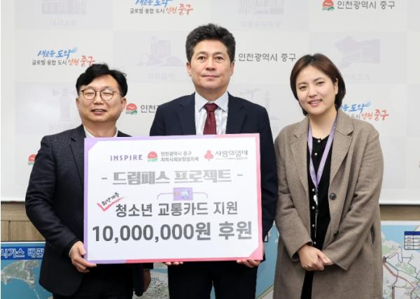 [한국제일신문, 김성옥기자] 인천시 중구는 최근 인스파이어 엔터테인먼트 리조트가 ‘중구 드림패스 프로젝트’를 위한 1,000만 원의 후원금을 기탁했다고 19일 밝혔다.