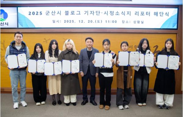 [한국제일신문, 김성관기자] 군산시가 올 한 해 현장 곳곳을 발로 뛰며 생생한 소식을 전한 ‘2025 블로그기자단과 시정소식지 리포터 해단식’을 20일 시청에서 개최했다.