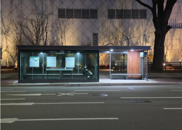 태양광 LED 무개승강장은 외부 전력 없이 태양광으로 점등돼 야간에도 승강장 시인성이 뛰어나며, 어두운 지역에서 버스 무정차 예방과 보행자 안전 확보에 도움을 주고 있다.
