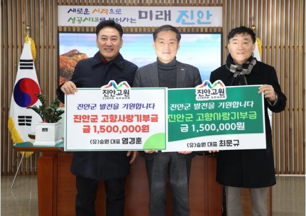 (유)승원 대표 염경훈·최문규, 진안군 고향사랑기부금 3백만원 기탁