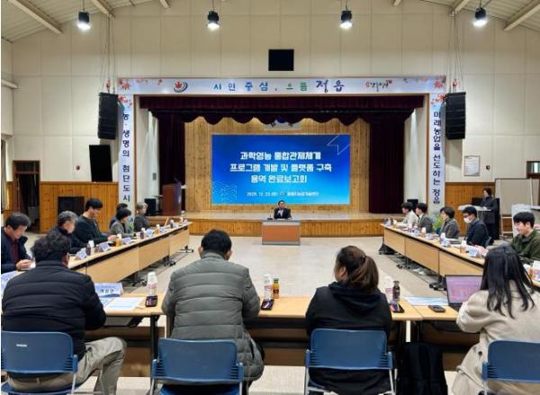 이날 보고회에는 농촌진흥청 관계자와 외부 전문가, 담당 공무원을 비롯해 실제 시스템을 이용하게 될 관내 농가 등 30여 명이 참석해 구축 성과를 공유하고 향후 활용 및 확산 방안에 대해 심도 있는 논의를 나눴다.