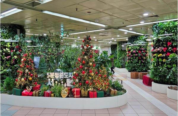 [한국제일신문, 김성옥기자] 서울시는 연말을 맞아 지하철 역사 실내정원인 ‘서울 아래숲길’ 5곳에 계절의 감성을 더한 크리스마스 연출과 겨울 정원을 선보인다고 밝혔다.