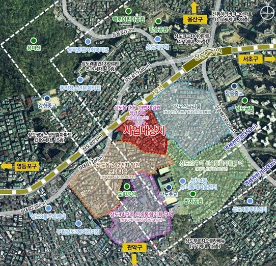 대상지는 지하철 7호선 장승배기역 인근에 위치하며 역세권 장기전세주택(상도스타리움) 및 모아타운(상도동 242번지 일대), 신속통합기획(상도14,15,23구역) 등 개발사업이 활발하게 진행 중으로, 인접개발 구역과 함께 역세권 장기전세주택 사업 추진을 통해 장승배기역 역세권 지역의 주택공급 확대 및 공간구조 재편을 하고자 한다.