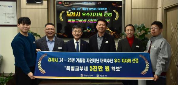[한국제일신문, 이미란기자] 김제시는 지난 24일 행정안전부가 주관한 자연재난 대책 추진 평가에서 우수 지방자치단체로 선정돼 특별교부세 5천만 원을 지원받는다고 밝혔다.