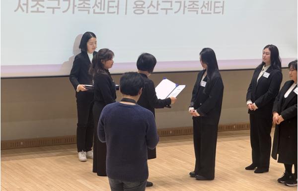 [한국제일신문, 김성옥기자] 서울 서초구는 서초구가족센터가 지난 12일 서울가족플라자(동작구 노량진로 10)에서 열린 '2025년 서울가족사업 성과보고회'에서 가족상담지원 사업 부문 ‘서울매력상’, 서울가족학교 사업 부문 ‘장려상’을 각각 수상했다고 밝혔다.