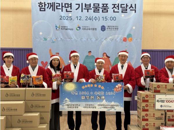 서부교육지원청은 지난 5월 가좌청소년센터에 라면 1,004개를 기부한 데 이어, 12월 24일 크리스마스 이브를 맞아 라면 1,004개를 추가로 전달하며 연말 나눔을 실천했다.