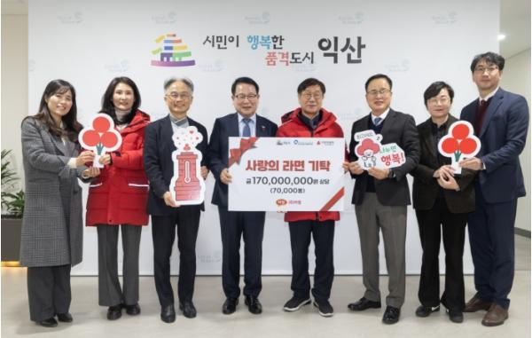 ㈜하림(사장 정호석)은 29일 익산시청을 찾아 지역 내 취약계층을 지원하기 위해 라면 3,700상자(1억 7,000만 원 상당)를 기탁했다.