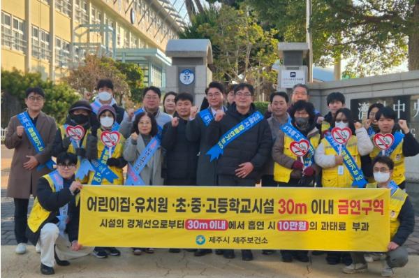 [한국제일신문, 김성옥기자] 제주보건소는 12월 29일 오전 9시 제주중앙중학교 일대에서 청소년 보호와 간접흡연 피해 예방을 위한 금연 캠페인을 실시했다.