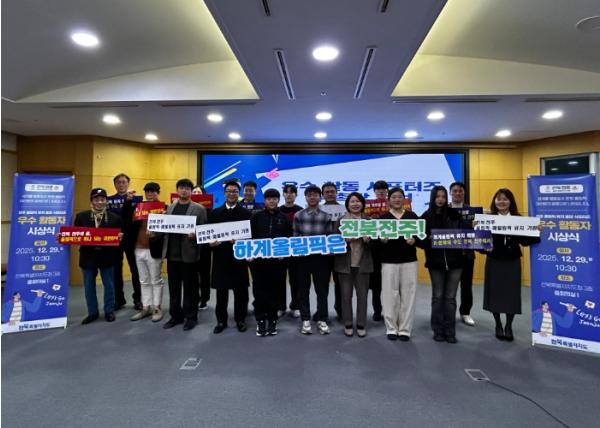 [한국제일신문, 윤진성기자] 전북특별자치도는 29일 도청에서 전주 올림픽 유치 홍보 서포터즈 우수 활동자 시상식을 열고, 우수 서포터즈 19명을 선정해 시상했다고 밝혔다.