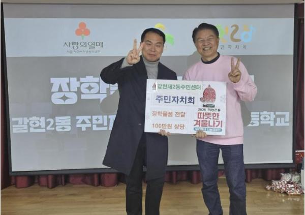 [한국제일신문, 김성옥기자] 서울 은평구 갈현2동은 지난 23일 갈현2동 주민자치회로부터 ‘2026 따뜻한 겨울나기’ 사랑의 장학 물품을 기부받았다고 밝혔다.