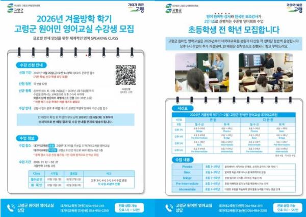 2026년 고령군 원어민 영어교실 겨울방학학기 수강생 모집