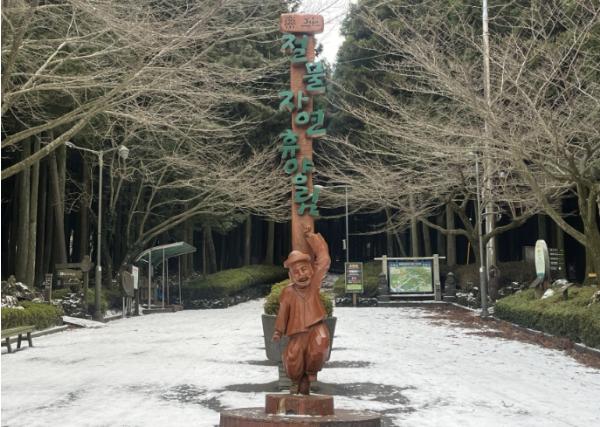 절물자연휴양림은 겨울마다 삼나무 숲 위로 내려앉은 설경과 고요한 산림 경관이 어우러져 겨울 정취를 만끽하려는 시민과 관광객들의 발길이 이어지고 있다.