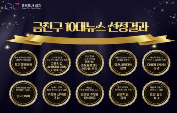 [한국제일신문, 김성옥기자] 금천구는 미래지향적이고 발전하는 금천의 새로운 변화를 상징하는 도시브랜드(BI) ‘좋은도시 금천’을 잘 구현해 낸 ‘금천구 10대뉴스’ 선정 온라인 투표 결과를 31일 발표했다.