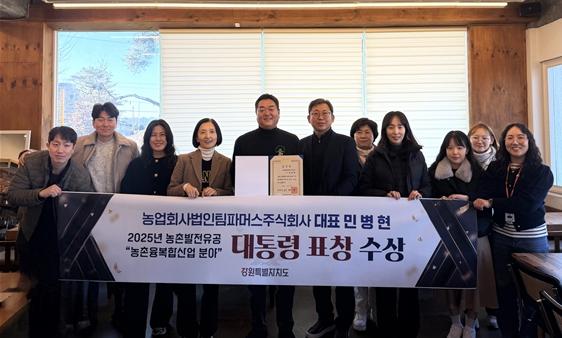 김미숙 강원특별자치도 농정과장은 “현장에서 농촌융복합산업을 통해 새로운 부가가치를 창출해 온 성과가 대통령 표창으로 이어져 뜻깊다”며, “앞으로도 체험·가공·유통이 연계된 농촌융복합산업 활성화를 통해 농가 소득 향상으로 이어질 수 있도록 적극 지원하겠다”고 말했다.