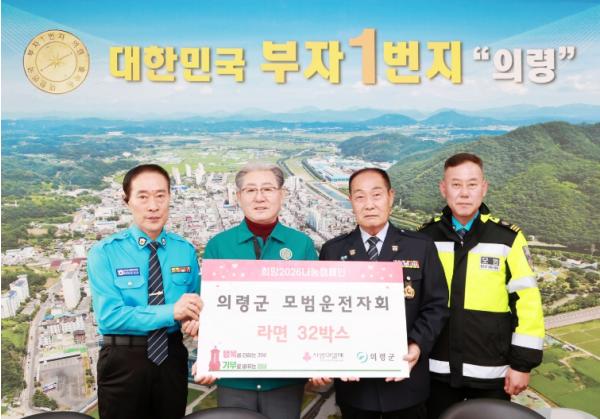 [한국제일신문, 김성옥기자] 의령군은 지난 30일, 연말 이웃돕기를 위해 의령군 모범운전자회가 라면 32박스(100만 원 상당)를 기탁했다고 밝혔다.