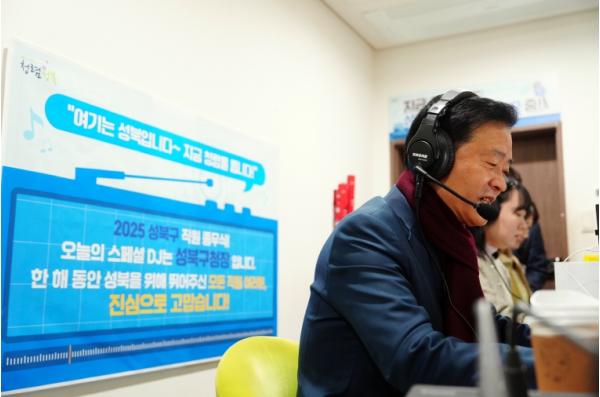 이날 일일DJ로 나선 이승로 성북구청장은 “2025년 한 해 예기치 못한 사건과 크고 작은 재난 상황 속에서도 각자의 자리에서 성실하게 책임을 다한 성북구 공직자 덕분에 성북구정이 흔들림 없이 나아갈 수 있었다”며 감사의 뜻을 전했다. 이와 함께 “서로에 대한 존중과 배려가 모여야 진정한 공공서비스가 완성된다”며 “간부 공무원과 전 직원 모두가 한 방향으로 힘을 모아, 2026년에도 구민이 신뢰하는 성북행정을 만들어 가자”고 말했다.