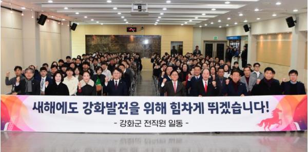 시무식에는 박용철 군수를 비롯해 윤재상 인천시의원, 한승희 강화군의회 의장, 군의회 의원, 공직자 등이 참석해 본격적인 새해 군정 업무 돌입을 함께 했다.