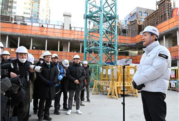 [한국제일신문, 김성옥기자] 오세훈 서울시장은 2일 오전 8시, 2026년 첫 현장으로 영등포구 유원제일1차(영등포구 당산동) 재건축 공사장을 찾아 안전관리 현황을 점검하고, 2031년까지 31만 호 공급 의지를 재차 다졌다.