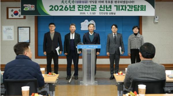 [한국제일신문, 김성관기자] 진안군은 2일 군청 상황실에서 신년 기자 간담회를 갖고 지난 한 해의 군정 성과를 공유하며, 2026년을 ‘준비된 변화가 확실한 결과와 결실로 완성되는 해’로 만들겠다는 새해 군정 운영 방향을 밝혔다.