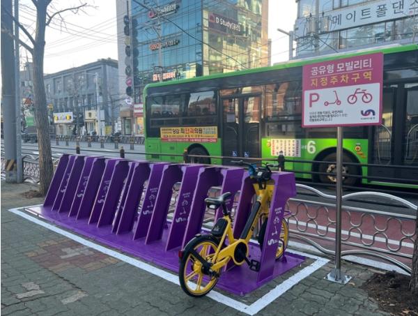 이번에 설치된 주차구역은 전동킥보드와 전기자전거를 함께 주차할 수 있는 공간으로, 전용 주차구역 표지판 설치와 노면표시를 통해 누구나 쉽게 주차 위치를 식별할 수 있도록 했다.