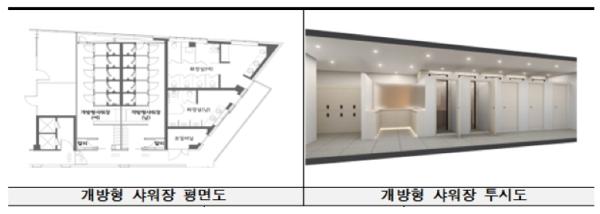 ‘개방형 샤워장’은 남‧녀 각 5개 개인별 샤워부스, 물품보관함 총 13개, 탈의실 2실 등을 갖추고 있다.