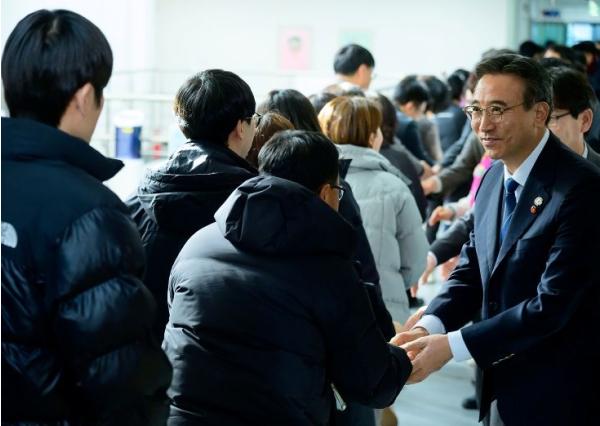 오순문 서귀포시장의 신년사에 이어 새해맞이 영상 시청과 구호 제창이 이어졌으며, 직원들은 “더 빛나는 희망의 서귀포시”,“우리가 만든다!”라는 구호를 함께 외치며 공직자로서의 책임과 역할을 다시 한번 되새겼다.