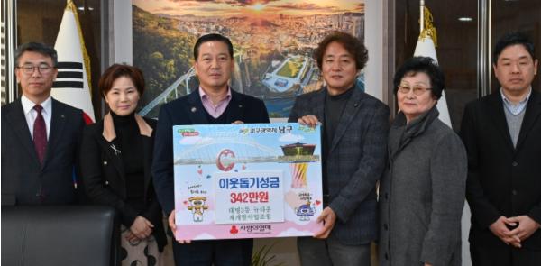 [한국제일신문, 김성옥기자] 대구 남구는 대명3동 뉴타운 재개발사업 조합의 조합장(이대룡)을 비롯한 임원, 대의원 및 직원이 지난 2025년 12월 30일 연말을 맞아 어려운 이웃을 위해 써달라며 정성껏 모은 성금 342만원을 기탁했다고 밝혔다.