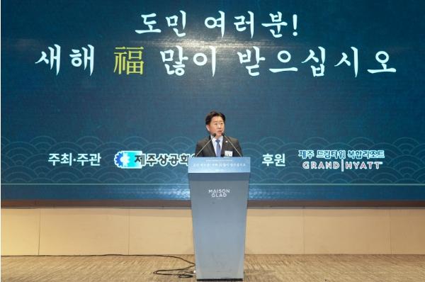 제주상공회의소가 주최한 이날 행사에는 오영훈 제주도지사와 이상봉 제주도의회 의장, 김광수 제주도교육감, 김일환 제주대학교 총장을 비롯해 전·현직 기관·단체장, 상공인, 사회단체 관계자, 도민 등 500여 명이 참석해 새해 인사를 나누고 제주 경제의 도약을 다짐했다.