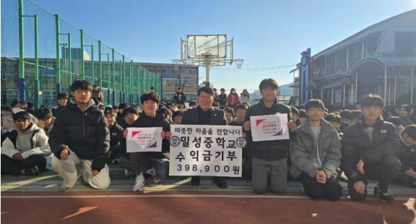 이번 성금은 밀성중학교 학생들이 학교 축제를 통해 마련한 수익금으로, 지역사회 나눔 실천을 위해 전달됐다.