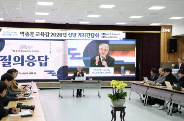 경상남도교육청은 6일 본청 2층 강당에서 ‘2026년 박종훈 교육감 신년 기자 간담회’를 열었다.
