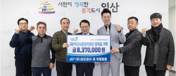 익산시 향토기업인 금강공사(대표이사 최은규)는 6일 시청을 방문해 (재)익산사랑장학재단에 장학금 837만 원을 기탁했다.