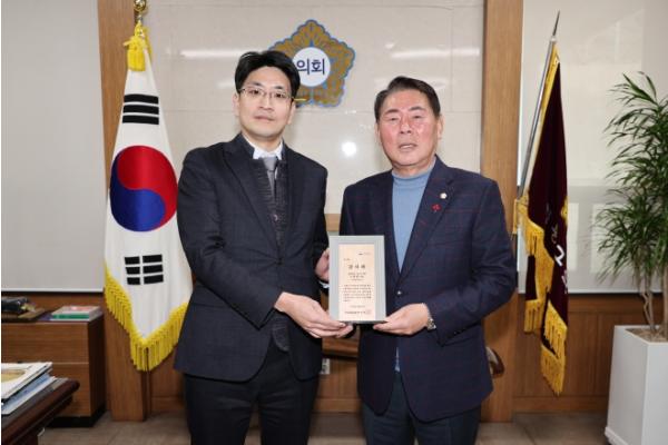 이번 감사패는 국가보훈부가 국가유공자 우선주차구역 설치에 기여한 지방의회 의원 및 공무원 등을 대상으로 수여하는 포상으로 국가유공자에 대한 예우 문화 확산을 도모하기 위해 추진되고 있다.