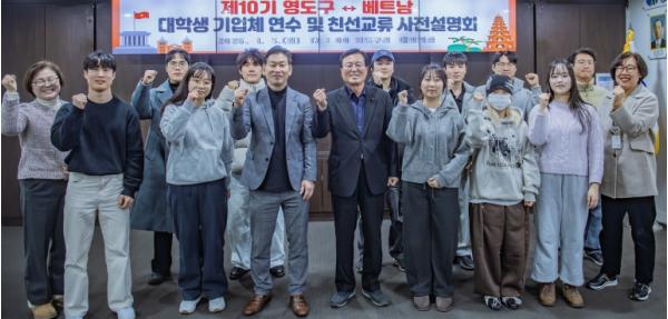 [한국제일신문, 김성옥기자] 영도구 국제교류협의회(회장 최동한)는 지난 1월 5일 영도구청 대회의실에서 ‘제10기 영도구-베트남 대학생 기업체 연수 및 친선교류’를 위한 사전설명회를 개최했다.