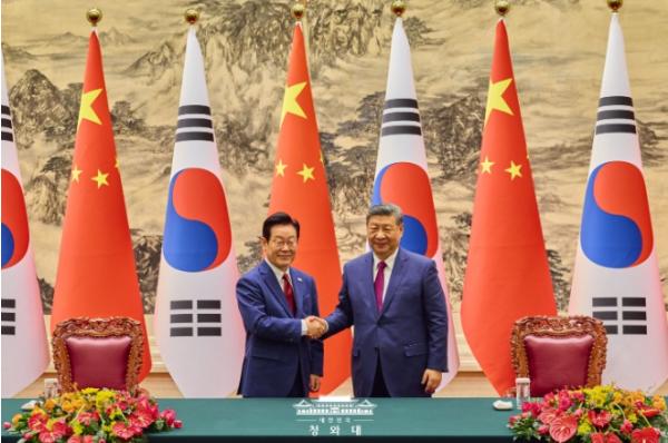 [한국제일신문, 김성옥기자] 중국을 국빈 방문 중인 이재명 대통령은 5일(현지시간) 오후 베이징에서 시진핑과 정상회담을 갖고 한중 관계 전면 복원과 경제협력 확대를 위한 구체적 성과를 도출했다.