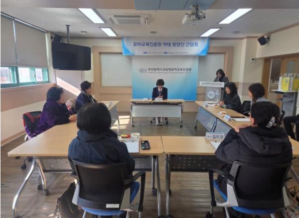 [한국제일신문, 김성옥기자] 부산광역시교육청유아교육진흥원은 지난 6일 유아교육진흥원에서 전·현직 원장 7명이 참석한 가운데 역대 원장단 간담회를 개최했다고 7일 밝혔다.