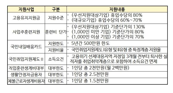 이번 결정을 통해 글로벌 공급과잉, 수요 부진 등 대내외 여건 변화로 어려움을 겪고 있는 석유화학산업 밀집 지역(여수, 서산, 울산 남구)이 모두 고용위기 선제대응지역으로 지정되어 지원받게 된다.