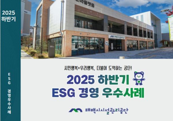 [한국제일신문, 김성옥기자] 태백시시설관리공단은 2025년 하반기 동안 추진한 ESG 경영 주요 정책과 성과를 종합한 '2025 하반기 ESG경영 우수사례집'을 발간하고, 시민 체감형 ESG 경영 실천 사례를 공유한다고 밝혔다.