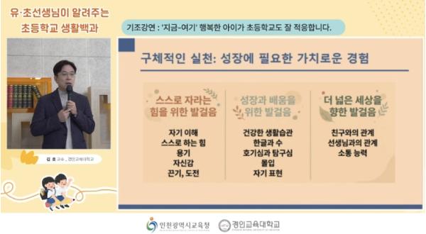 연수는 '지금-여기 행복한 아이가 초등학교도 잘 적응합니다’를 주제로 한 경인교육대학교 김호 교수의 기조강연으로 시작됐다.