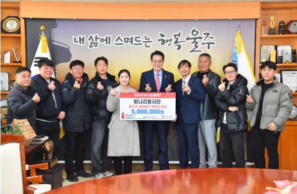 [한국제일신문, 김성옥기자] 울주군 지역 봉사단체인 ‘비나리봉사단’이 8일 울주군에 지역 저소득세대를 위한 성금 500만원을 전달했다.