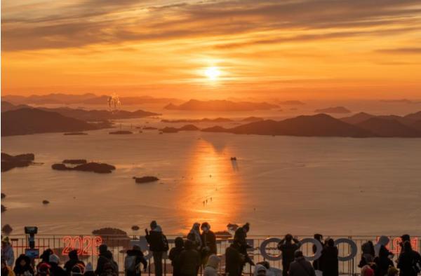 날씨가 맑은 날에는 수평선 너머로 떠오르는 해가 섬 능선과 바다를 붉게 물들이며, 새해 여행의 상징적인 순간을 선사한다.