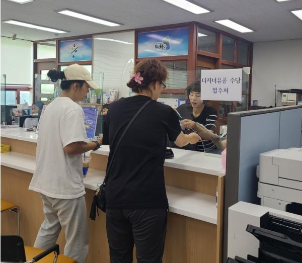 지급 절차는 해당 연령의 자녀가 있는 다자녀 부모 중 1명이 읍·면사무소를 방문해 신청서를 작성하고, 수당 전용 카드를 수령하면 다자녀 및 지원 요건 검증 후 다음 달 7일 이내 수당이 지급된다.