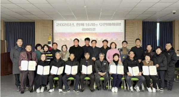 이날 회의에서는 총 24명의 주민자치위원이 새로 위촉됐으며, 향후 주민자치회를 이끌어갈 임원진 선출도 함께 진행됐다. 선출 결과, 신임 회장에는 양점용 위원이 선출됐으며, 부회장에는 서정숙 위원, 감사에는 김수복·이현숙 위원, 사무국장에는 이진우 위원이 각각 선임되어 2026년도 주민자치회 운영을 이끌게 됐다.